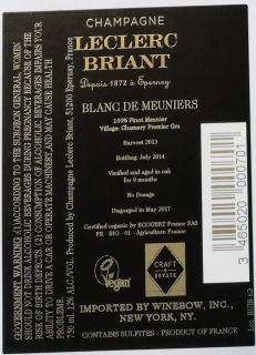 Blanc de Meunier Back Label