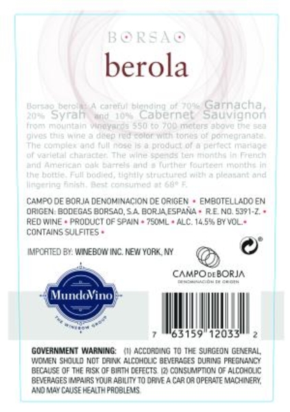 Borsao Berola 2014 Back Label