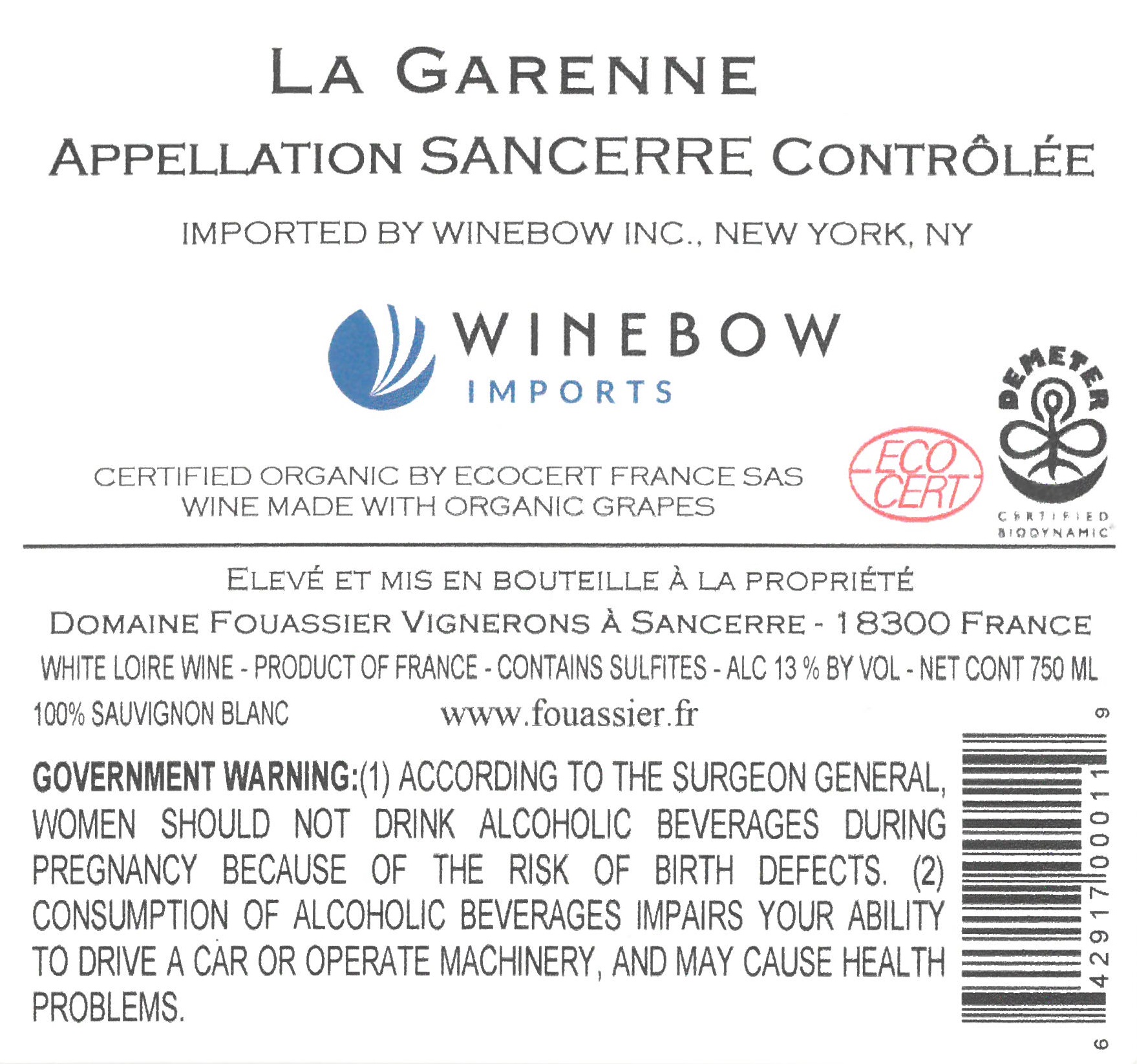Domaine Fouassier La Garenne Back Label