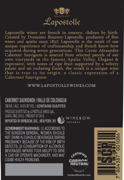 Lapostolle Cuvee Alexandre Cabernet Sauvignon Back Label
