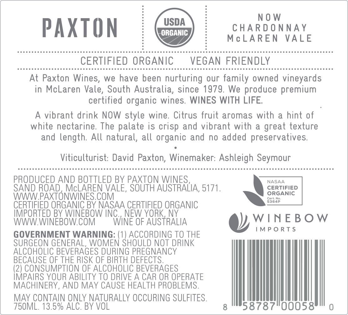 Paxton NOW Chardonnay Back Label
