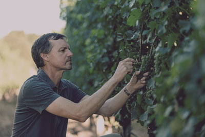 Winemaker, Andrew Murray, inspecting fruit